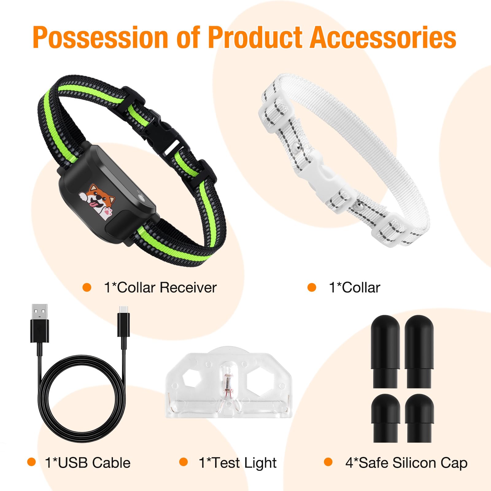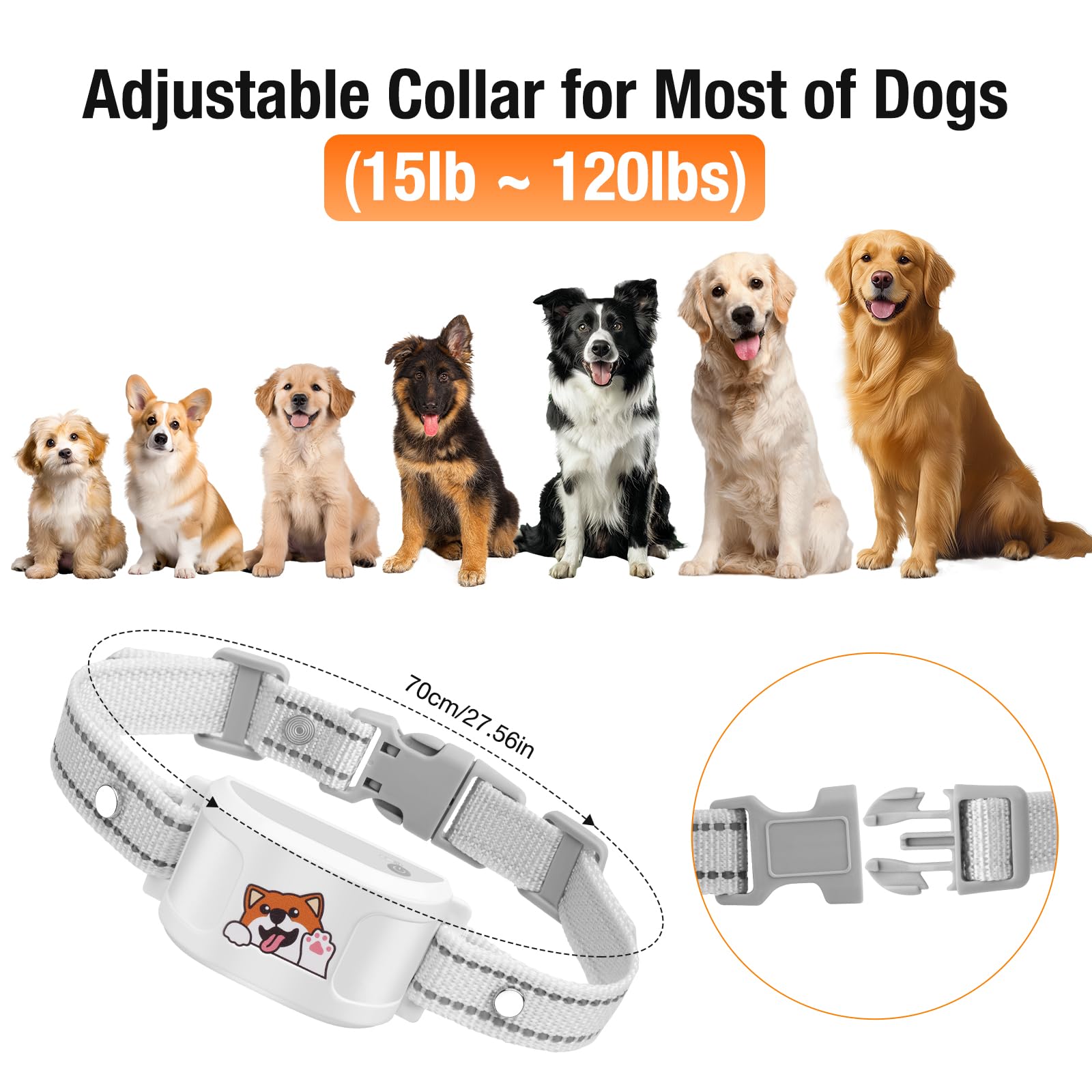 Når du trener på nært hold, bytter du til Bluetooth-modus (20–50 m) for presis lyd-, vibrasjons- eller statisk korreksjon – alt styrt fra appen. Halsbåndet er IP67-vanntett, støvtett og designet for daglig bruk i all slags vær.