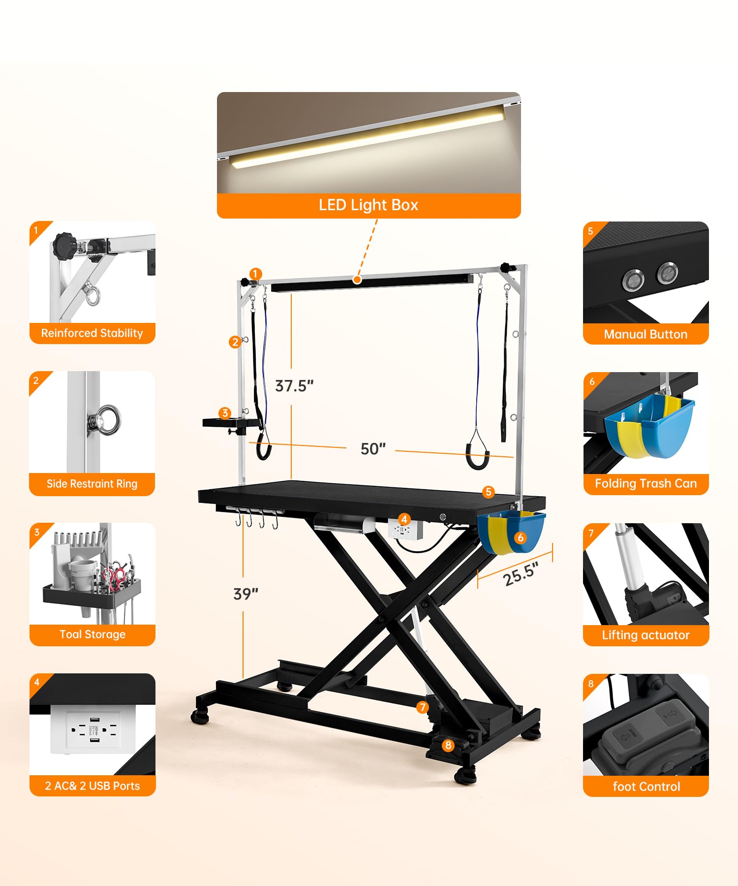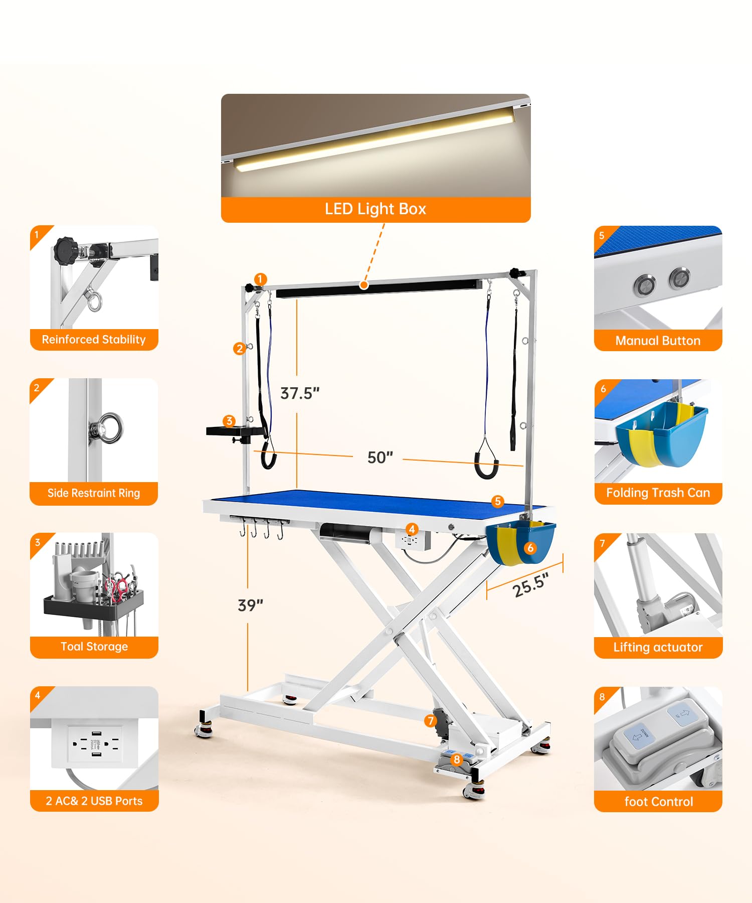 Kort sagt: Et gjennomført, elektrisk hundefrisørbord som kombinerer design, sikkerhet og kraft – bygget for å vare.