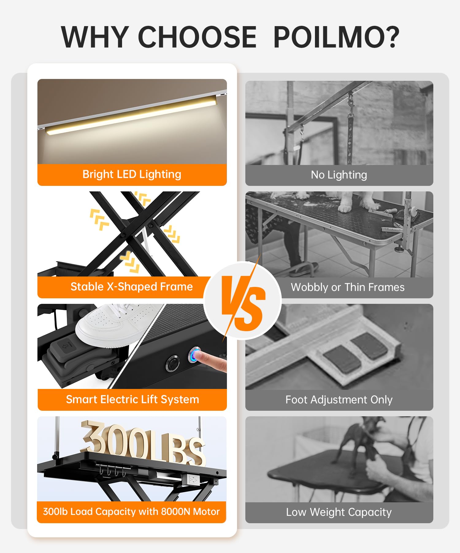 Polimo – Elektrisk hundefrisørbord med LED og høydekontroll